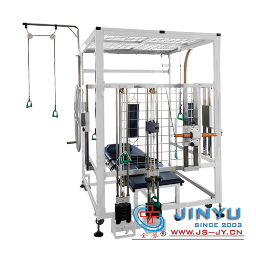 組件:肩關節旋轉訓練器、前臂旋轉訓練器、腕關節屈伸訓練器、複式牆拉力器、訓練床、功能網架、肩梯、滑輪吊環訓練器。