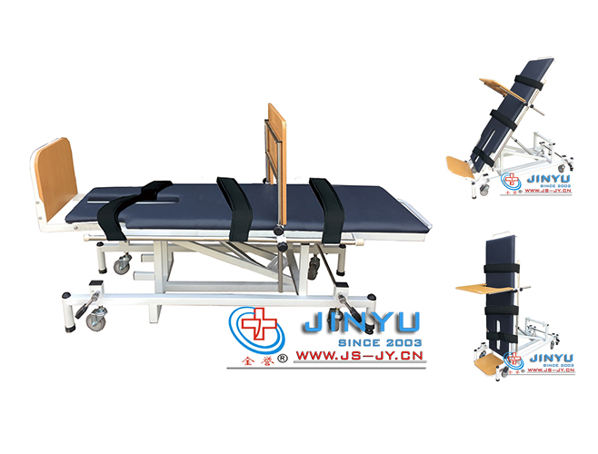 通過調整傾斜角度使患者產生自身重力作用,幫助患者完成從仰臥位到站立位,重心從低到高的過渡,使患者適應立位狀態。用於偏癱、腦癱及腦外傷等障礙者進行恢複性站立訓練。